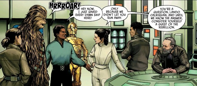 Another great thing about picking up here is Leia, Chewie, and Lando really hashing it out over Lando’s questionable actions. I mean, Lando has some good points. There isn’t a lot of wiggle room once Vader is calling the shots. But as convincing as Lando is, Leia is not one for excuses or compromise.