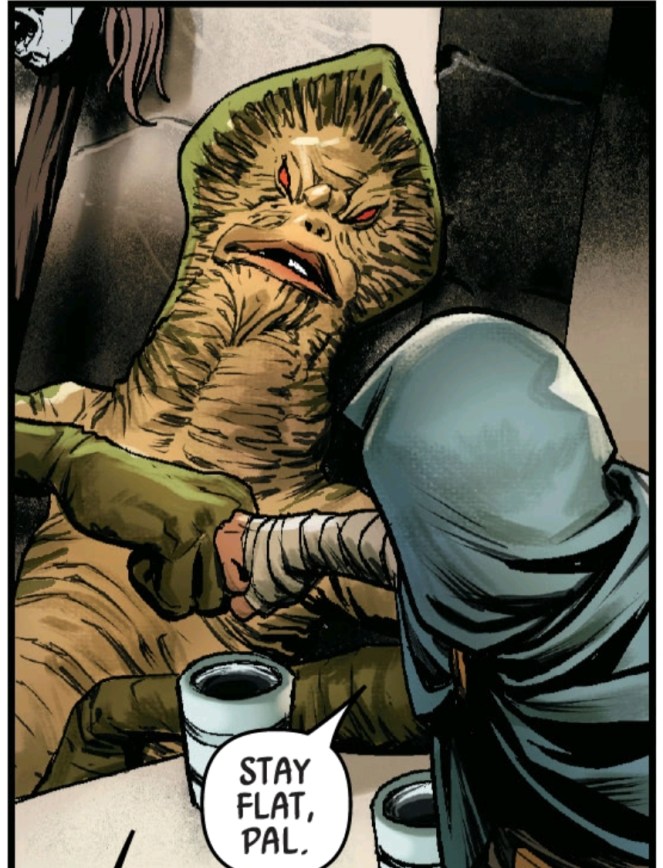 While Lando is sneaking around Jabba’s Palace he meets up with an old buddy Amanaman! Don’t act like that quote is not the best.
