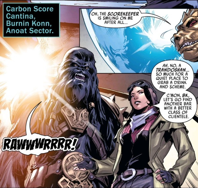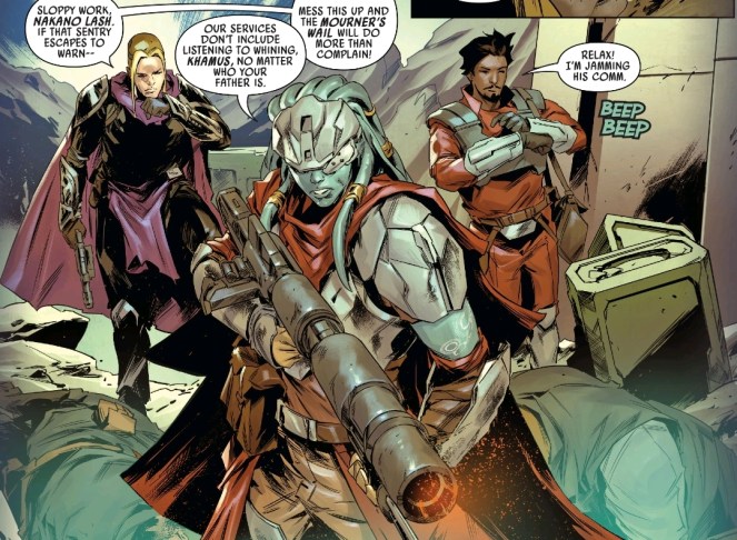 As always big jobs need a big crew. We are introduced to Nakano Lash, a REALLY cool looking Nautolan bounty hunter who takes the lead. Her story takes some interesting turns throughout.