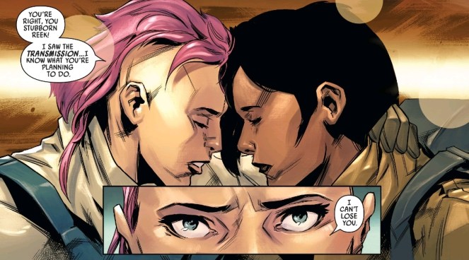 It’s really refreshing to see on the page. (One day I hope to see it on the screen too.) There are lots of new female characters introduced and some character depth which includes some LGBTQ representation as well. But as always, it can be a double edged sword in a story like this. This particular comic series is very violent and no character is safe from that violence it seems, which can be harmful to the very people being represented. I think it’s admirable that the creators are working to include representation across the panels of their comic stories, but it also needs to be said that they need to be careful how they treat those characters. In the long run I hope that including more representation in the creative team will be instrumental in the growth, inclusion, and equality of Star Wars storytelling.