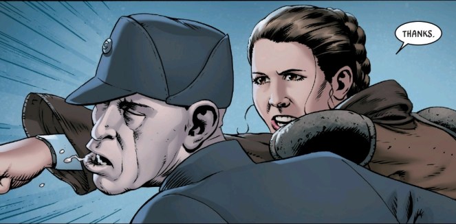 Every time I get to see another Leia punch is a good day. Her left cross is pretty solid from the looks of that guys face!