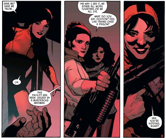 So when the prison is overtaken by a mysterious attacker who starts freeing prisoners Leia and Aphra need a hand.