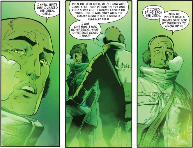 In the temple Korin and Chelli finally get a moment to connect for some heart to heart time. I know right? Aphra? Caring? There’s some quality stuff here.