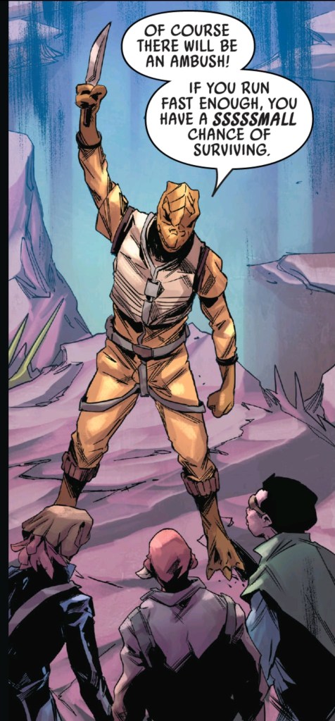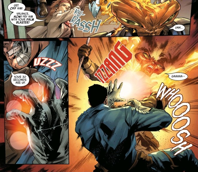 The series continues to be all the over the top action we’ve come to expect. But this arc adds some depth behind the characters. Not just Valance! I’m really happy to see T’onga and Losha seemingly ready to join the fight. All of this seems to be leading straight into the ginormous War of the Bounty Hunters Crossover which looks to be even crazier than this!