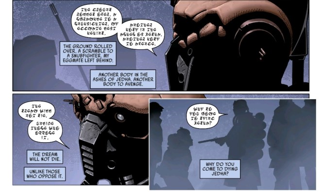 Leading the last of the Partisans on NaJedha is Benthic Two-Tubes. Who fought beside Saw and his eggmate Edrio. Benthic stays for vengeance. He’s come a long way since his days as a Cloud Rider.