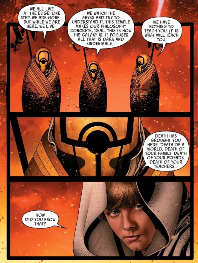Luke Joins Chulco as the Force leads them to the last temple of the Central Isopter. There the cultists worship death at the edge of the blast crater on Jedha.