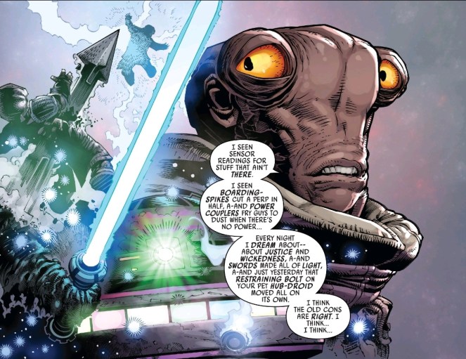 So turns out Aphra does have one friend around! Her former existential droid Dek-Nil has been reprogrammed by the empire as a hubdroid.