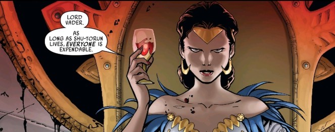 Leia’s trusted source and contact for fully outfitting the rebel fleet is the traitor after all. Queen Trios has rigged the entire fleet to be helpless in the face of Vader’s Death Squadron. During the Queen’s escape she does share a few words with the Princess.
