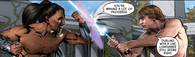 Luke and Tula Markona start to become very close. Turns out there’s a Jedi in the family history and Luke hears a bit of knowledge passed down.