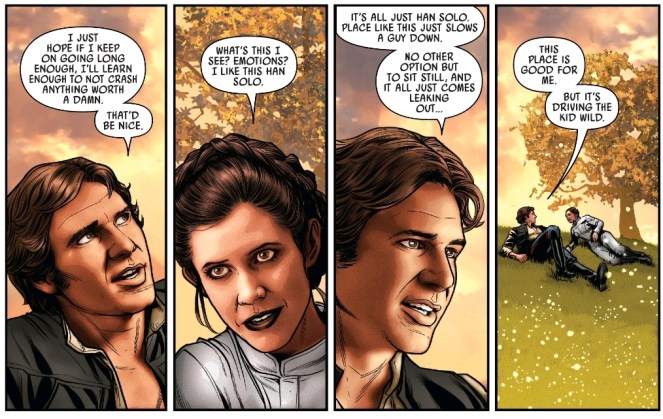 For the first time Han Solo isn’t running or gunning. He actually gets a moment to sit with his feelings!