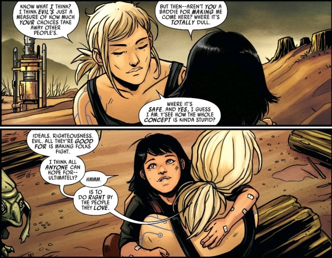 Spurrier’s story here is scheme upon scheme upon scheme but there are some really interesting questions raised. We get to learn a LOT about Aphra and her issues with trust, survival, and love. The run changes artists a few time so every issue seems kinda fresh. Aphra and her ideals coming up against both the Alliance and the Empire is very interesting.