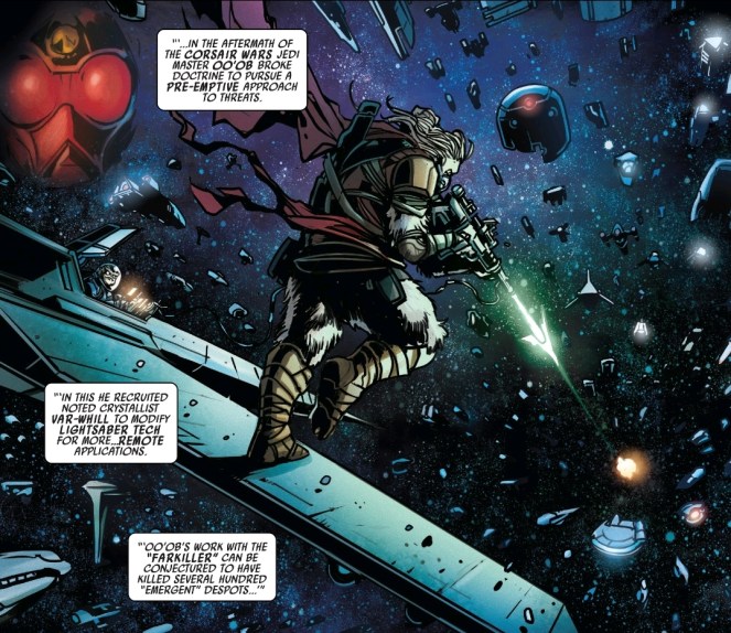 Lightsaber cannon technology got Oo’ob in trouble with the Jedi. But he did succeed in creating the Farkiller. Which is pretty metal. Wonder if anyone could utilize this weaponized kyber technology. Because that would be bad.