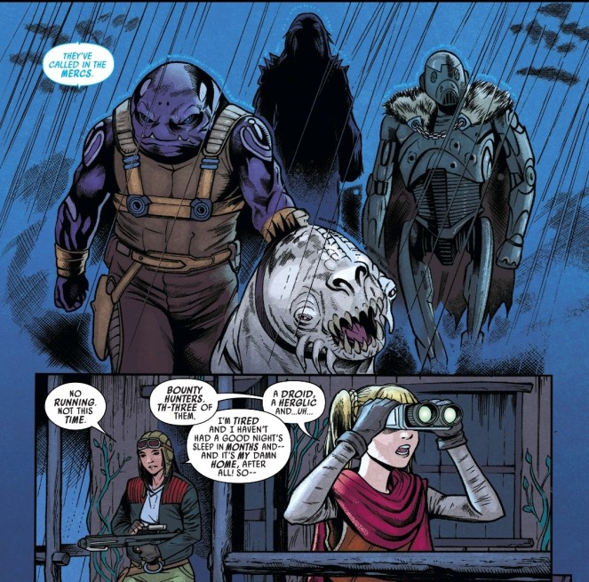 Okay, so Doctor Aphra and Vulaada are trying to make their way in a ruthless galaxy but unfortunately the Rebel Alliance and the Empire are both after Aphra so it seems our rogue archaeologist won’t be catching a break anytime soon. Oh, also childhood memories and run ins with the ex are sure to keep Aphra on her toes.