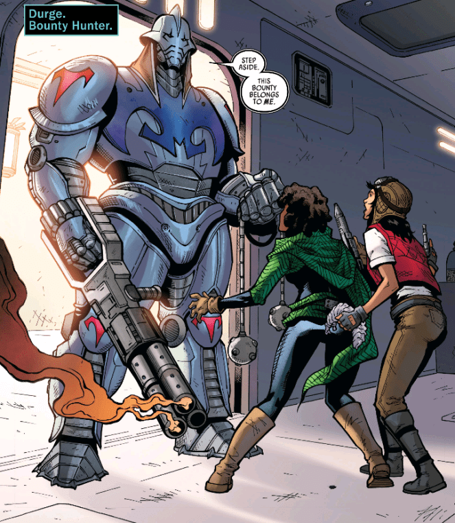 On another mission for Domina Tagge, our duo runs across a familiar giant armored bounty hunter. Durge makes his canon debut!