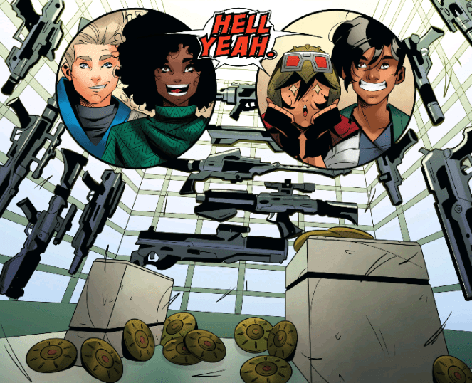 Aphra, Sana, Lucky, and Ariole team up to escape and find their way to the armory of their dreams!