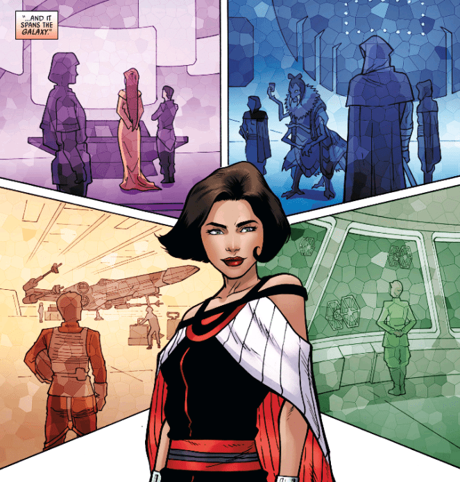 Aphra finally accesses the stolen data crystals and realizes that Crimson Dawn is everywhere. Looks like this ain’t the last she’ll see of Qi’ra and her machinations.