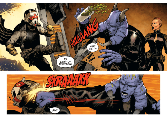 Ochi uses his new affiliation with Vader throughout the story to add some weight to his cred. Usually it doesn’t really work out until Vader actually shows up… But watching Ochi getting pummeled is oh so satisfying!