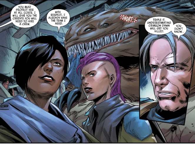 This arc has everything. Beautiful art, great story, surprising character twists, and definitely leaves us wondering what’s next! Valance was a legends character who I wasn’t exactly excited to see brought into canon but now am extremely glad for his inclusion. The Bounty Hunters series has introduced many fascinating characters and with T’onga and Losha building up such an interesting crew, I am definitely excited for the future!