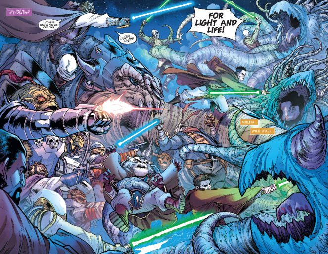 The Hutts and Jedi join forces against the Drengir! This is just one beautiful panel but what a ride!