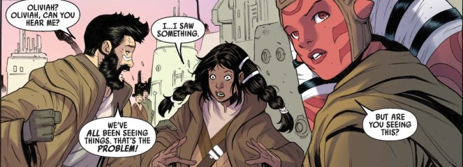 In the square when things start getting weird for the Force users, Oliviah Zeveron is the first to see something.