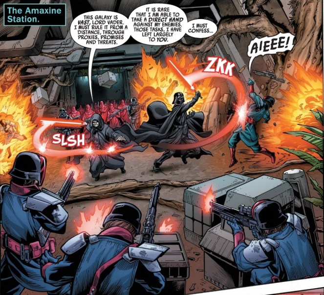 Sidious and Vader finally reach their goal and intend to stop Qi’ra and whatever she might unleash from the Fermata Cage.