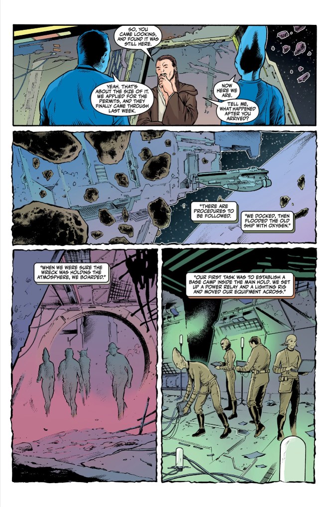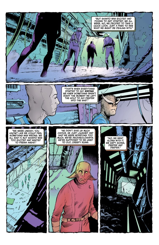 Jinn and Kenobi have wonderful chemistry and you can practically hear their familiar voices. Qui-Gon Jinn has always been a fascinating character. A Jedi who is more in tune with the Force than with the Jedi Council and their political leanings. And Kenobi, a young Padawan who sees a much more black-and-white view of the Jedi and their role in the galaxy. The storytelling shines as Qui-Gon teaches Obi-Wan even as he realizes he has much to learn himself! Andrea Mutti‘s art fits the haunted atmosphere well. Each location the characters visit feels unique and the moments visually fit the tone of the story.