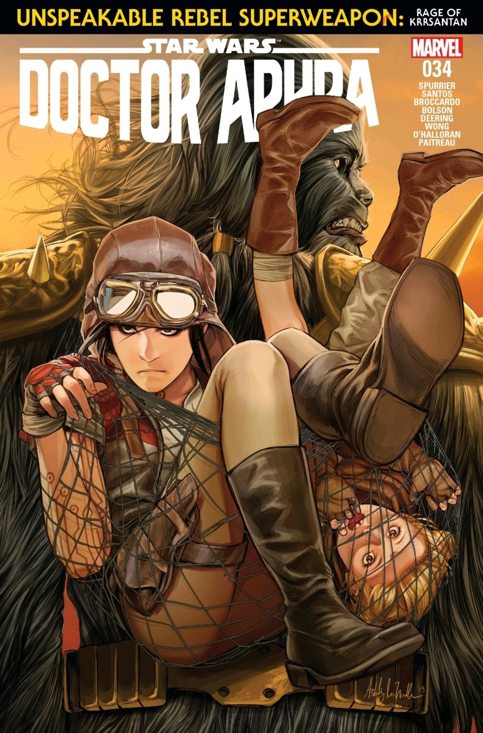 Doctor Aphra has had a DAY. Turns out there might be an internal bomb connecting her with her former-murder-droid-now-greatest-frenemy-Triple Zero that explodes their heads if they get too far away from each other implanted by a sadistic mad scientist who is also watching their entertaining exploits through a live feed while he fixes his friends arm!